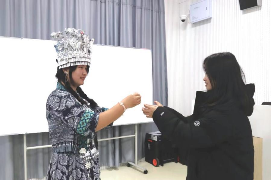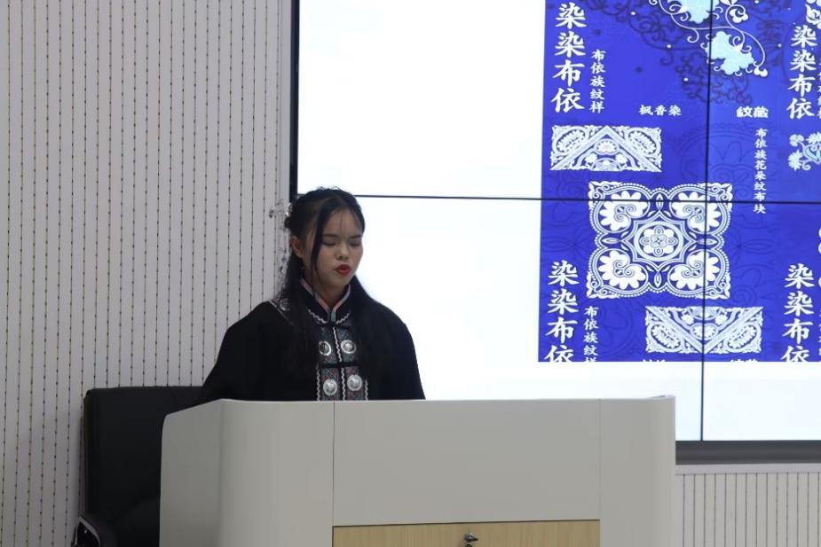 卢金地同学分别从民族起源、民风民俗以及民族特色介绍布依族的民族文化。卢金地同学讲到布依族是由古代僚人演变而来,且布依族的语言有完整的语音系统。接着她从祭祀和节日两个方面介绍了布依族的民风民俗,祭祀作为布依族的传统,有着十分丰富的内容,如祭碑、祭祖等,布依族的节日也十分丰富,如三月三、六月六等。而后向同学们讲述布依族服饰的特点,其服饰通常以鲜艳的色彩和精美的图案为特点,图案多为自然界的花草、动物等,具有浓厚的布依族特色。