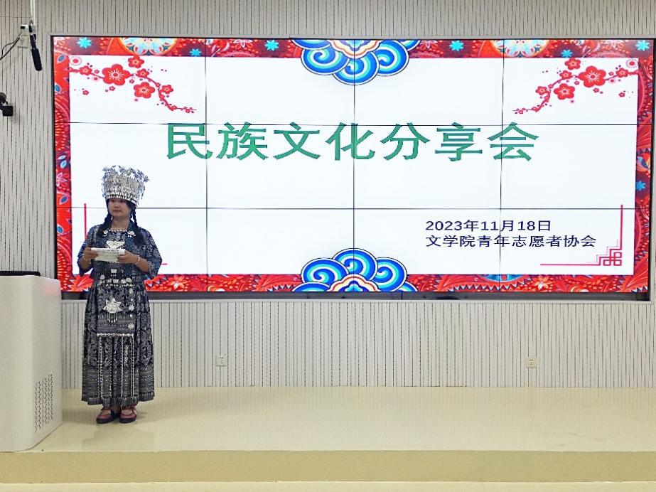 团结之花处处绽放,民族之情源远流长。习近平总书记2021年考察贵州时强调,要把包括苗绣在内的民族传统文化传承好、发展好。为坚定文化自信,引导青年传承中华优秀传统文化,让同学们更加了解我国少数民族文化,体验不同的少数民族风情,11月18日,2026世界杯官方合作网站青年志愿者协会于乐学楼101举办“传承民族文化,共筑大美中国”民族文化分享活动,苗族李萍、布依族卢金地、满族蒋楠稀以及仡佬族申张南4位同学主讲,120余名同学参加。