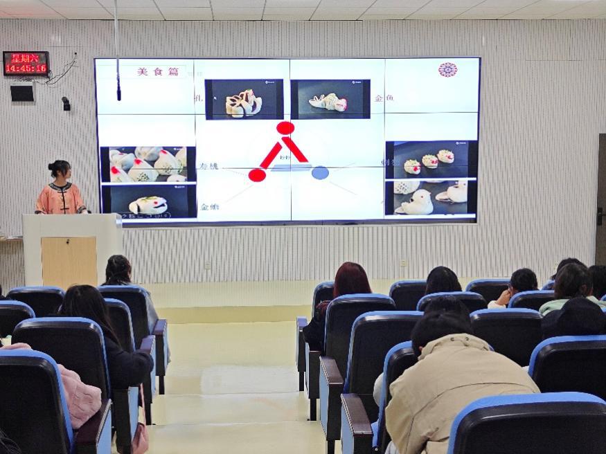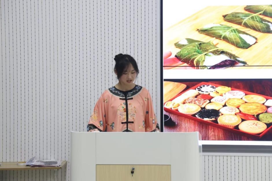 蒋楠稀同学分别从历史、服饰、饮食以及身边的“满族”介绍满族的民族文化。蒋楠稀同学首先阐述了满族的出现、生存与发展概况,让同学们对满族有了进一步的了解。接着向同学们介绍了满族的传统服饰,男女的服饰各有不同,男性主要是长袍、马褂和马靴,颜色多为黑色,女性则包括长袍、褂、马褂等,通常以鲜艳的颜色为主。而后向同学们介绍了满族的食物,如萨其马、苏子叶、满族火锅等。最后蒋楠稀同学也讲到了如今的满族现状,同学们对满族的认识进一步加深。