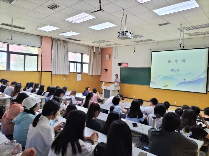 紧接着,郑凯歌老师先是以“考研三问”引入员工关心的考研问题,为员工解疑答惑。其次,郑老师结合历届员工的情况,对毕业论文写作问题进行了分享。郑老师强调员工要从兴趣点入手来进行毕业论文选题,并指出作为汉语言文学的员工,在写作论文的过程中需要对自身有更高的要求。最后,郑老师希望同学们在论文写作中多向导师请教,常和同学交流探讨。